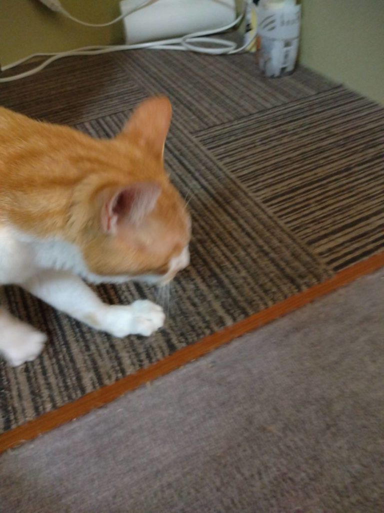 猫部屋へ顔を出したら、トラさんのお出迎えと思いきや一瞥するとガリガリ爪とぎを始めました。