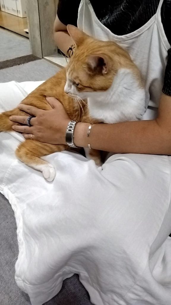 トラは、利用者さんに抱っこされてご満悦の様子。私も抱っこしたい。羨ましい(TдT)
