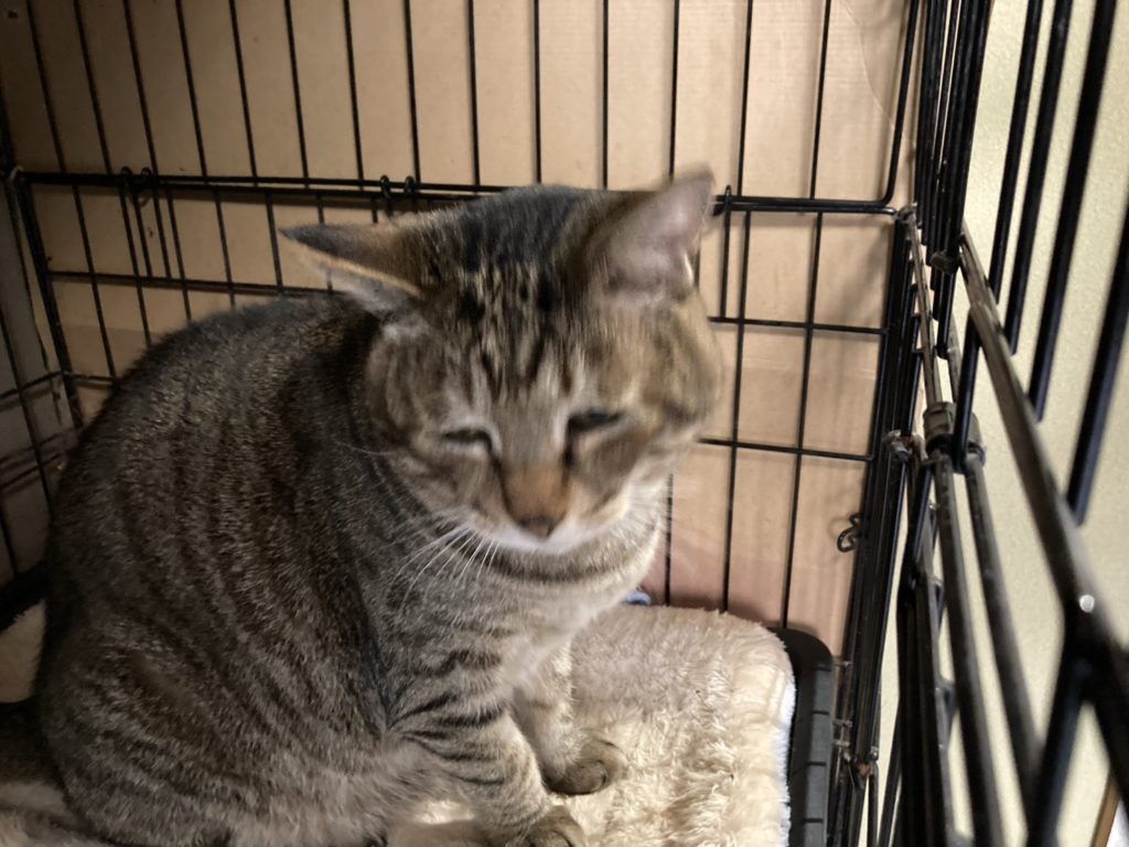 ちびは、何をしたのか知らないけど罰でケージに隔離されていました。